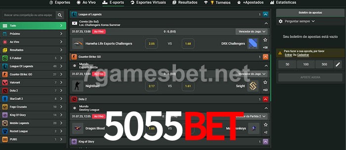 O 5055Bet oferece uma grande seleção de opções de apostas em e-sports com probabilidades competitivas